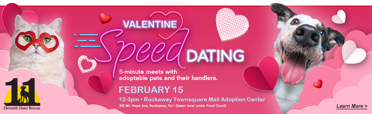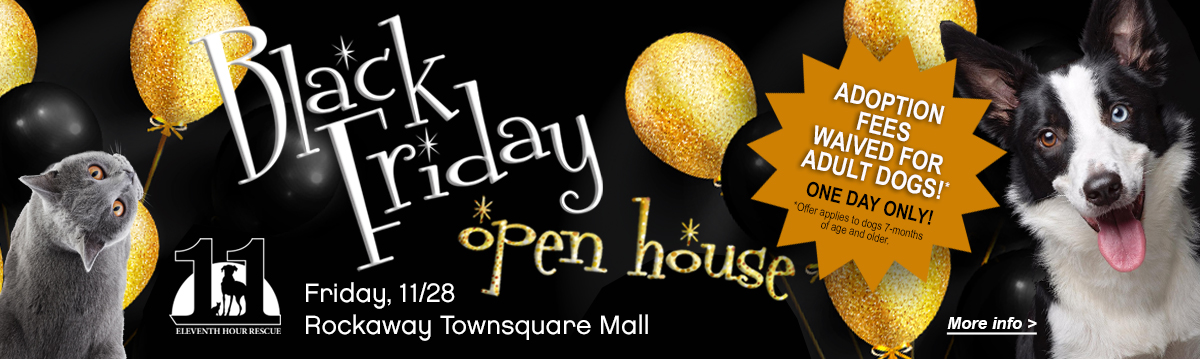Eleventh Hour Rescue, based in Morris County NJ, is a primarily volunteer run, no-kill rescue that saves animals on Death Row from high-kill shelters. Eleventh Hour Rescue dogs and cats are cared for by our compassionate and dedicated team of volunteers and staff. Whether in foster homes, our kennel or adoption centers, each dog and cat receives a clean and safe living environment, fresh food and water, medical attention, and most importantly an abundance of love and care until they find their FURever homes. We are dedicated to educating the community about the animal over-population problem and the importance of spaying and neutering. All funds go directly to supporting our animals and their needs. We are an eligible charity under federal code 501(c)3 founded in 2004.